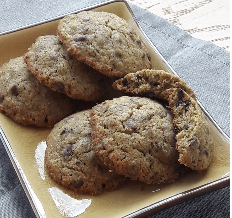 Je viens de tester la recette avec 150g de beurre et 100g de sucre, j’avais de la farine de mais nixtamalisé mais je pense que ça doit bien fonctionner avec de la fécule ou de la farine de riz si on veut rester sans gluten, et j’ai de la farine de lentille verte. La pate s’effrite beaucoup mais on arrive a faire des cookies, à la sortie du four ils sont très mou il faut bien les laisser refroidir. Et pour finir c’est super bon, comme toute recette à base de beurre, de sucre et de chocolat ^^ on ne sent pas de gout étrange, je referais !